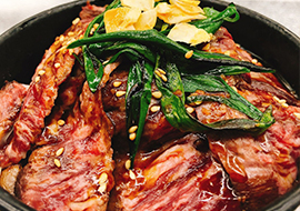 京都で大人気の焼肉屋!旨味の濃いハラミが一番人気。お店で大人気のハラミを丸ごと焼き上げ、自家製ダレに絡めた極上焼肉丼が看板メニュー!肉本来の旨みを感じられる牛カツ丼も大人気!